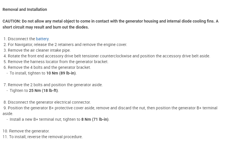 First, open the hood and inspect the drive belt. Make sure it is in good condition and tight. I attached a pic below showing the belt and the alternator.
