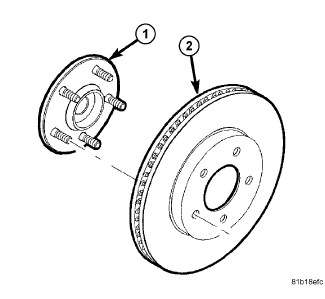 6. Slide the brake rotor (2) off the hub and bearing (1).