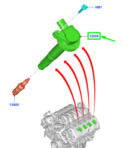 The engine is fitted with eight ignition coils, 1 for each cylinder