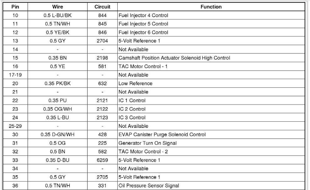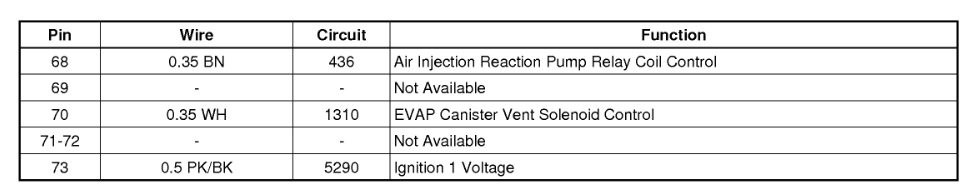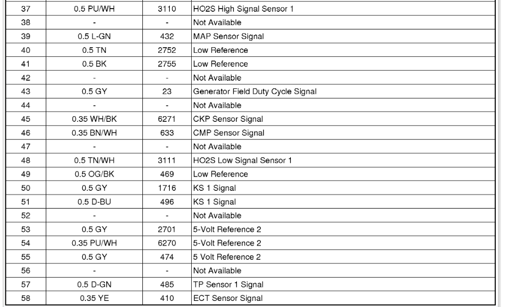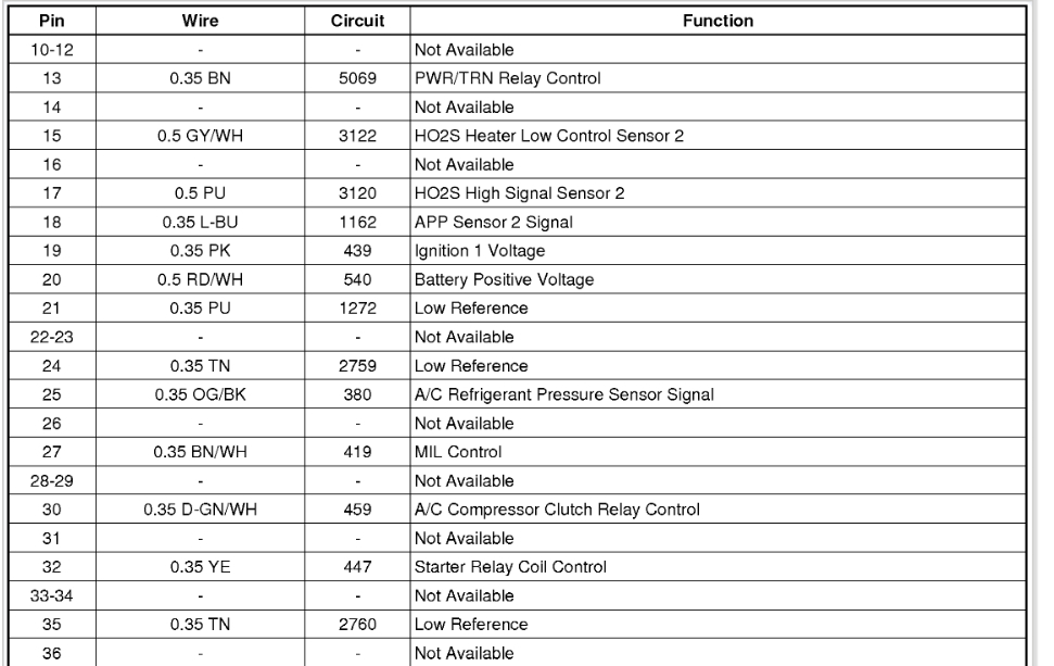 I have attached the diagnostics below and the powertrain management wiring schematics below. Additionally, I attached a pinout of the connector.