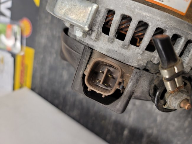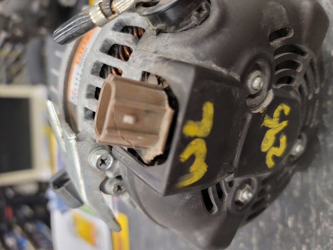 When I turn on the high beams in the car without the battery connected, the car turns off. If I have it connected without load, the voltage is about 13.8 with load and with battery it's 13.4.