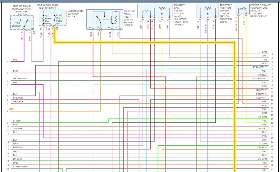 Driving down the road minding my own business, and the engine shuts off on me. No sputtering, no surging, no stalling, it just shuts off. The check engine light did not come on. It still turns over but will not start. Not getting any spark. There is a connector with two wires that connects to the coil pack. I have been told that this supplies the voltage to the coil pack. One wire looks red and the other is black with a white stripe. I say it looks red because it is not a bright red. It is a faded red. It could be another color because it is faded a lot. I thought the ECM may have bet its maker, but I am not sure. A friend suggested it could be the crankshaft position sensor (I have read where this vehicle has two of them.) And/or the camshaft position sensor. Also, I have looked for the crankshaft position sensor, and it looks like you have to take the harmonic balancer/pulley off to get to the bolt that holds the crankshaft position sensor in place. I would like help testing the crankshaft and camshaft position sensors before taking them out. I do have a volt ohm meter, and I know how to use it. (I have built a Heathkit TV with my dad when I was in high school and other Heathkit items.) Also, I would like advice on taking the sensors out if needed. Advice such as do I have to take the harmonic balance/pulley off to remove the crankshaft position sensor behind it, and where are the other two sensors. Also, I want to make sure that the ECM is getting voltage to it. Which wire(s) should I test when the ignition is in the on position. I have checked all the fuses and they are okay. I am a decent backyard mechanic. I have replaced head gaskets twice (Once on this car. It did start right up.), Clutches twice, water pumps, alternators, power steering pumps, radiators, brakes, A/C compressor, and other small items. Thanks for your help. I do appreciate it. Also, any other things you can think of to check would be appreciated. One last thing, if the crankshaft and/or camshaft position sensors are bad, would that stop the ECM from supply voltage to the coil pack and prevent spark from occurring. Thank you so much. Jim Cohn