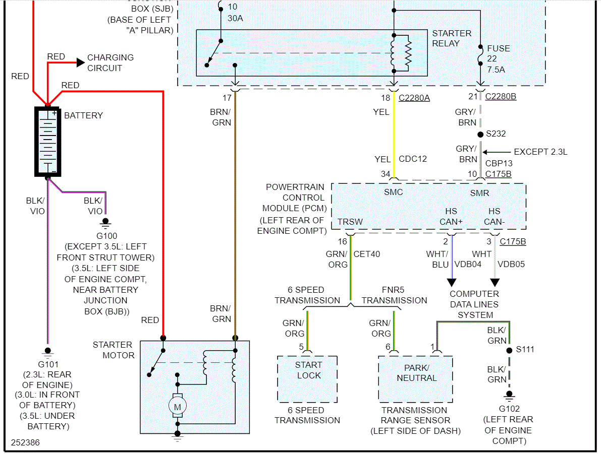 Now, I attached the wiring schematic below for the starting system. Notice I highlighted several fuses and a relay. That is where we need to start.