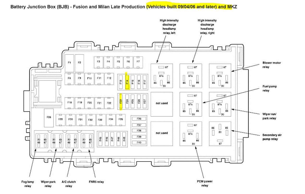 To make things interesting, Ford had a midyear production change in the fuse boxes. Pic 3 below shows the fuse box for early production (before 9/4/06) which is very early production and pic 4 is after that date. You can compare the format of both pics and see differences and then compare them to your vehicle. Or there should be a sticker on the door frame or door indicating the production date.