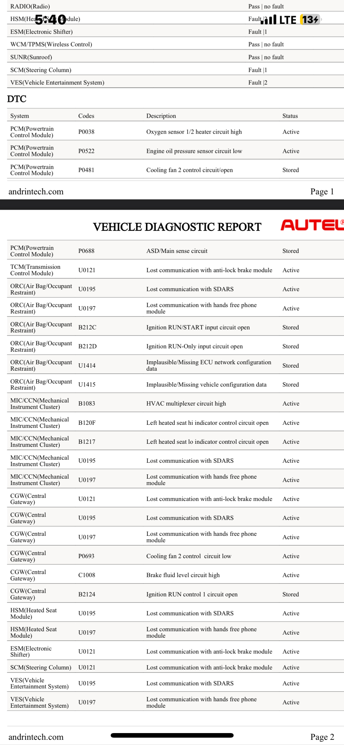 May I as well get the can bus for the ABS, could be a short or open circuit in the wires. I have attached image of the codes below.