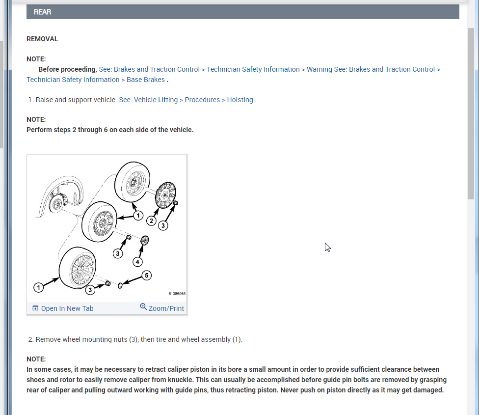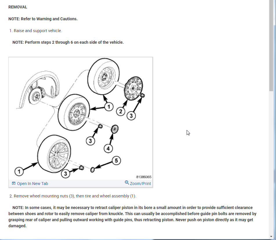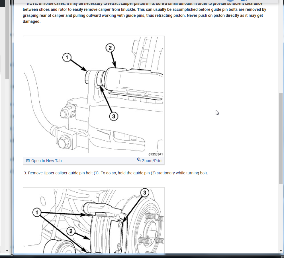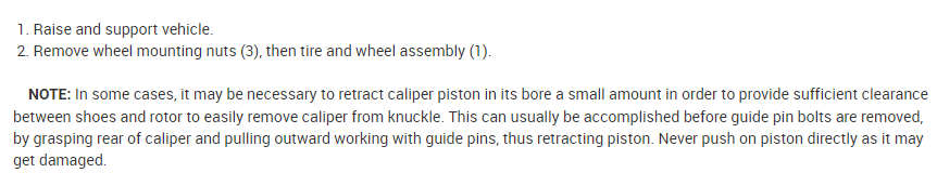 Note : In some cases, it may be necessary to retract caliper piston in its bore a small amount in order to provide sufficient clearance between shoes and rotor to easily remove caliper from knuckle. This can usually be accomplished before guide pin bolts are removed by