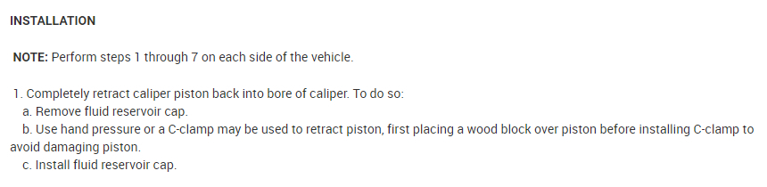 grasping rear of caliper and pulling outward working with guide pins, thus retracting piston. Never push on piston directly as it may get damaged.