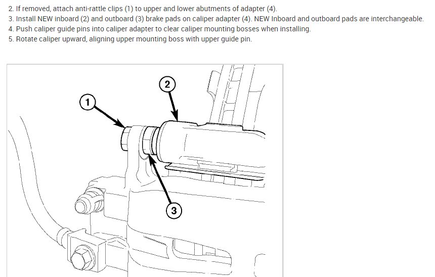 3. Remove inboard (2) and outboard (3) brake pads from caliper adapter (4).
