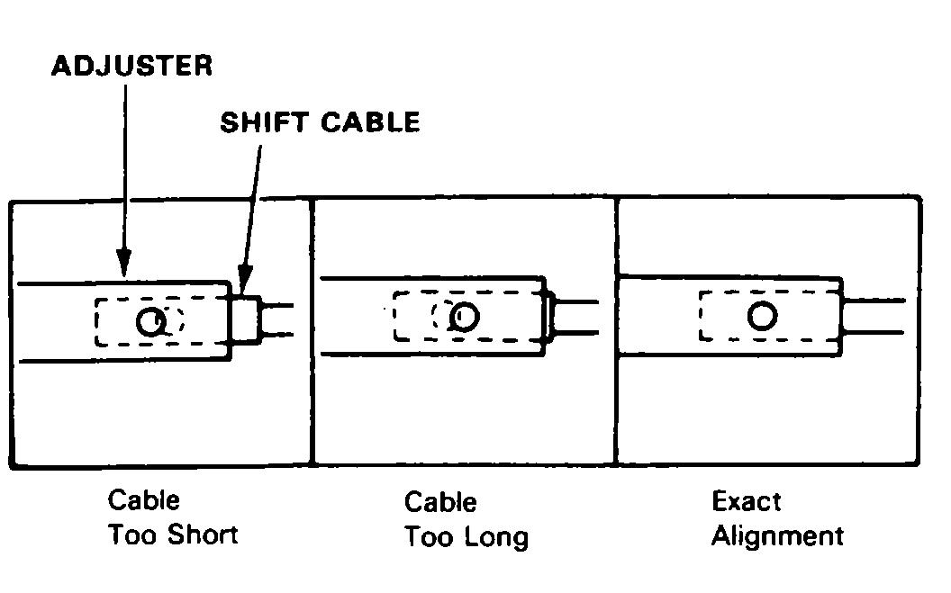 NOTE: There are two holes in the end of the shift cable. They are positioned 900 apart to allow cable adjustments in 1/4 turn increments.
