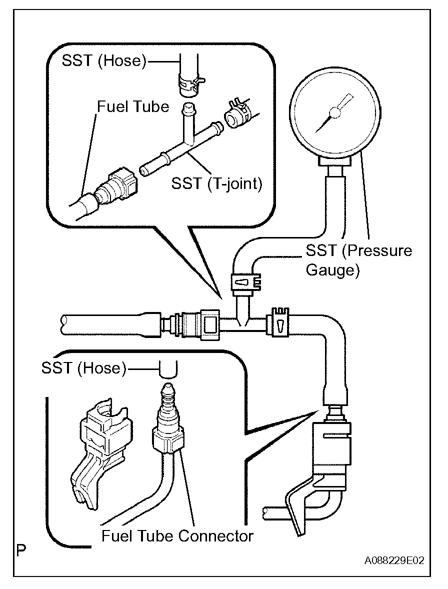 f. Install SST and the fuel tube connector that was removed form the new fuel tube.