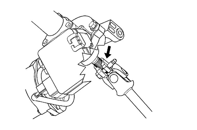 11. Place scribe marks on the intermediate shaft to steering column, for use during assembly.