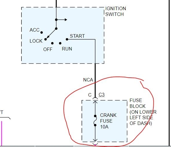 First, the first two pics below show fuses that need checked as well as the starter relay. Check those first.