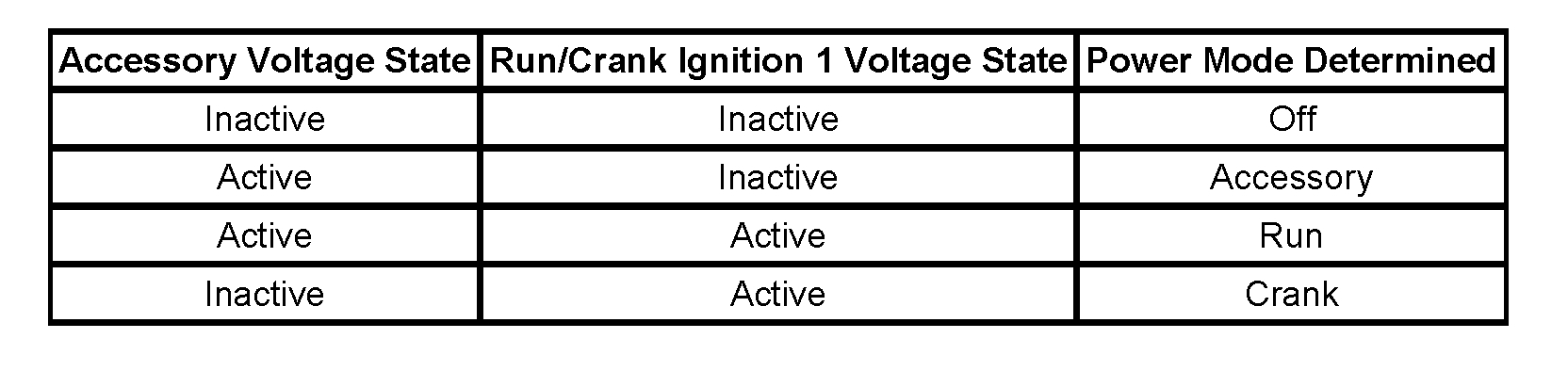 Those modules that have Run/Crank signal inputs also remain in the state dictated by the last valid power mode message from the IPM or the RCDLR. They then check the state of their Run/Crank Ignition 1 voltage input to determine the current valid state. If the discrete ignition input is active, the modules will fail-safe to the Run power mode. If the discrete ignition input is inactive, the modules will fail-safe to Off-Awake power mode and shut down after a while if no other conditions require them to be awake.