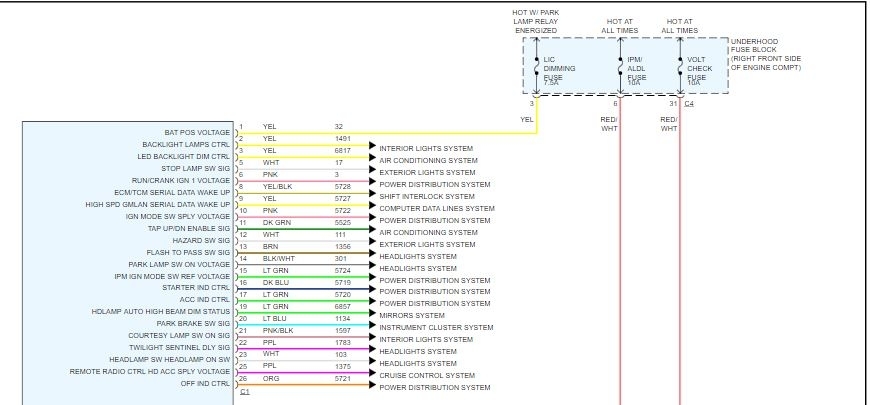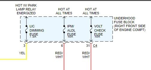 I have attached a schematic that I had to break into three pictures so you could read them. Power to the IPM is provided via two different fuses which are hot at all times. They are in the under hood fuse box. See picture 5. Check those. I have a feeling one is bad.