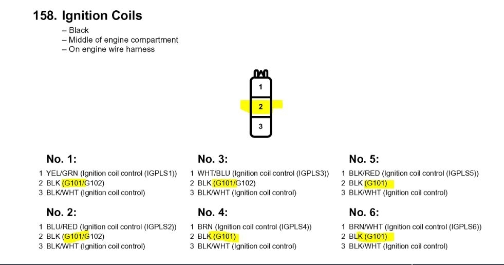 If there is no spark and nothing was mixed up, next I need you to confirm ground to the coil packs (which is a common ground) was damaged. To do this, disconnect one coil at a time and check for continuity between a known good ground and the center pin in the connector. See the attached picture.