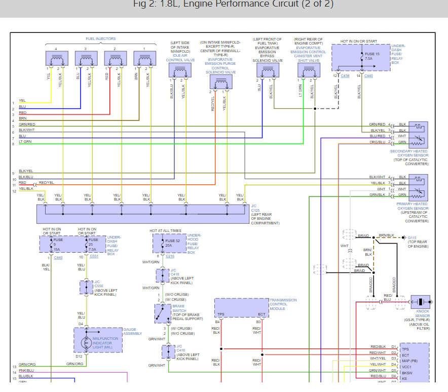 Test fuel pump with (+) jump on yellow green wire at main relay. - Good pressure builds to 57PSI.