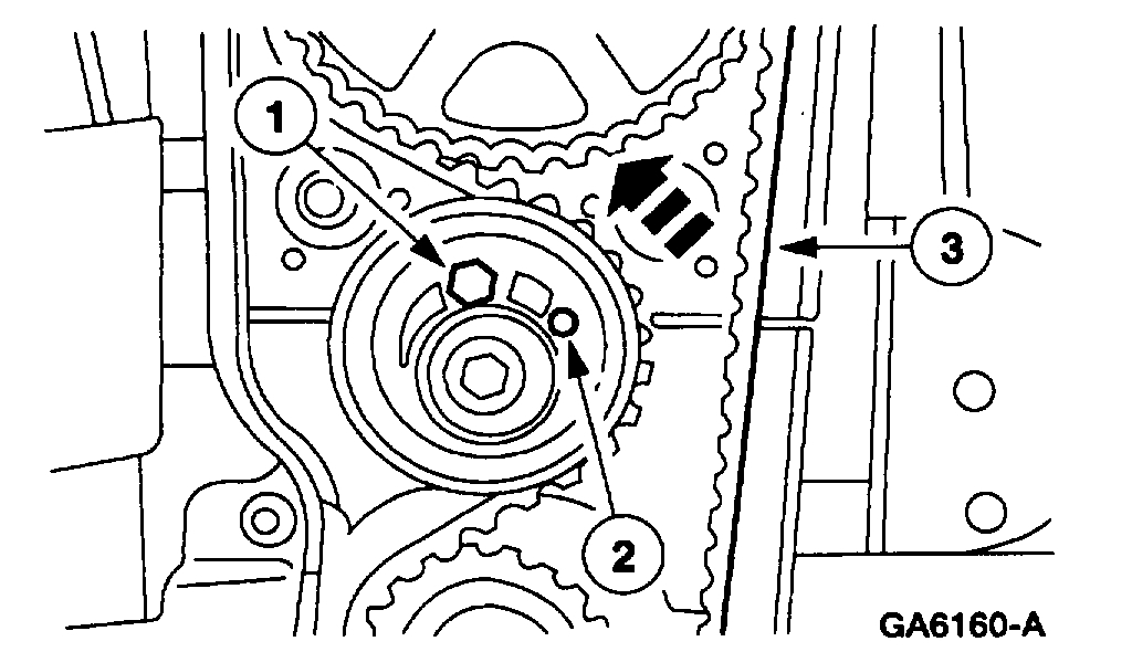 2. Insert a suitable holding tool to lock the timing belt tension-er in place.