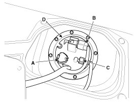 5. Remove the fuel pump plate cover (D) after removing the bolts.