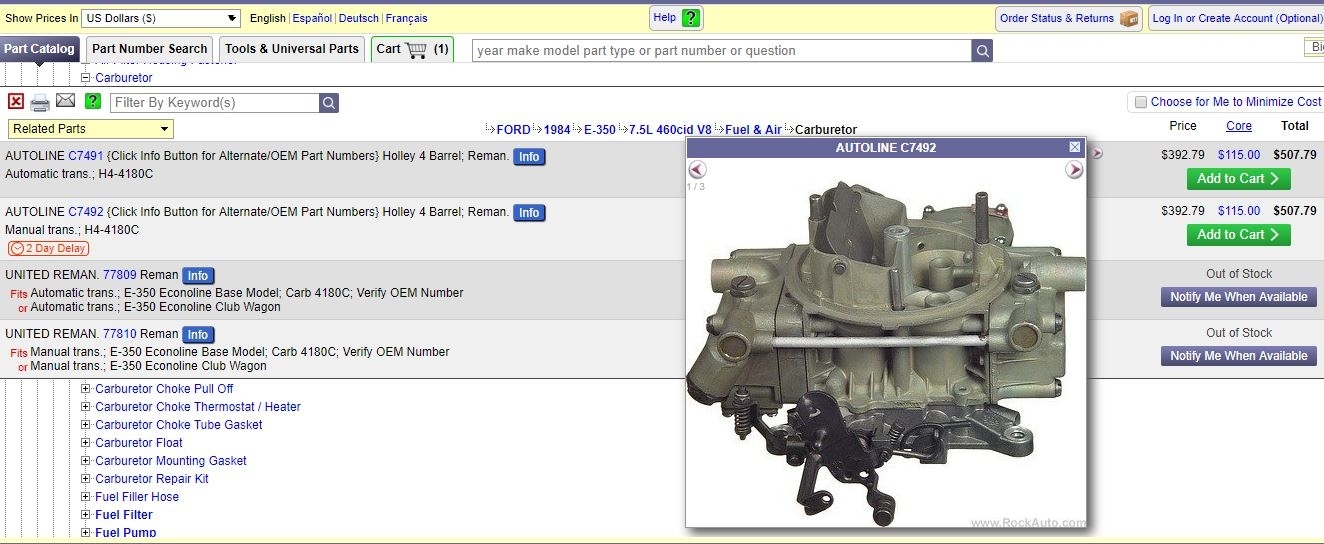 If you are going to purchase one, I would give one of the sites like Jegs or Summit or the Holley Store, a call and tell them what you have and they should be able to send you everything you need to make it work. Back then, it didn't really matter if it was a motor home our just a pickup truck, the engine was all the same.