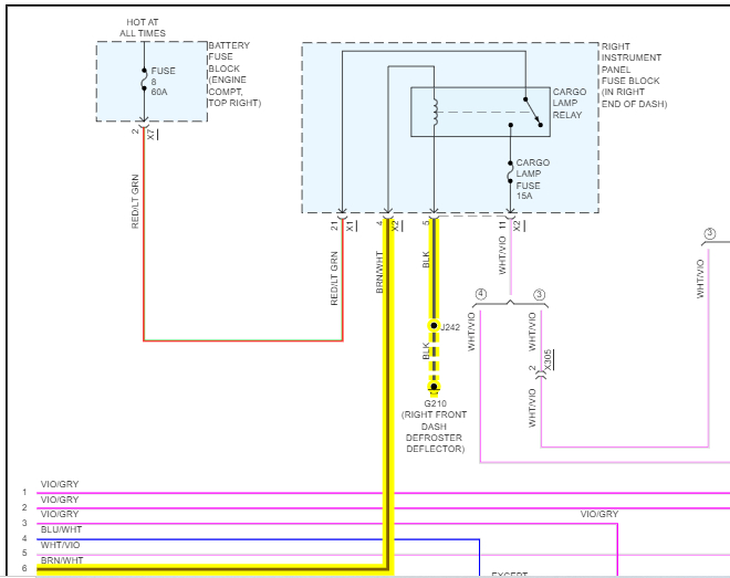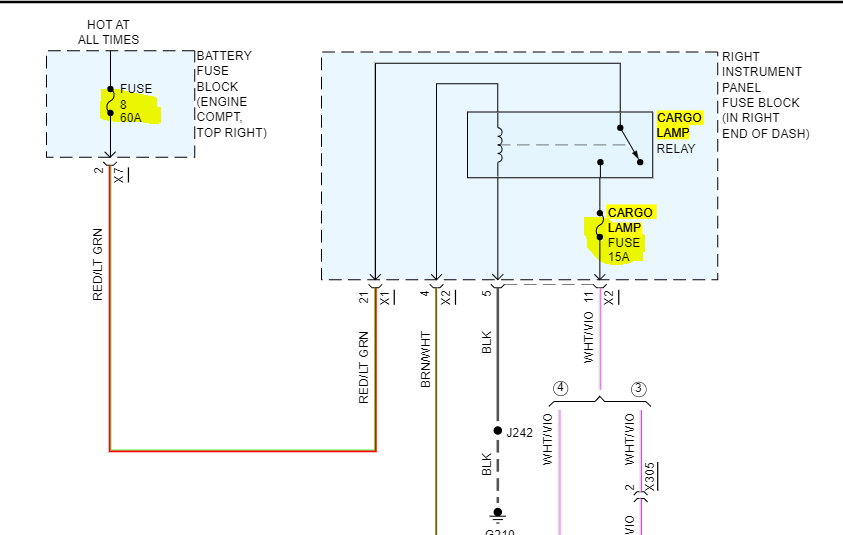 If we are getting power from fuse 8 to the relay secondary side but power doesn't make it to the cargo lamp fuse, there is one other possibility.