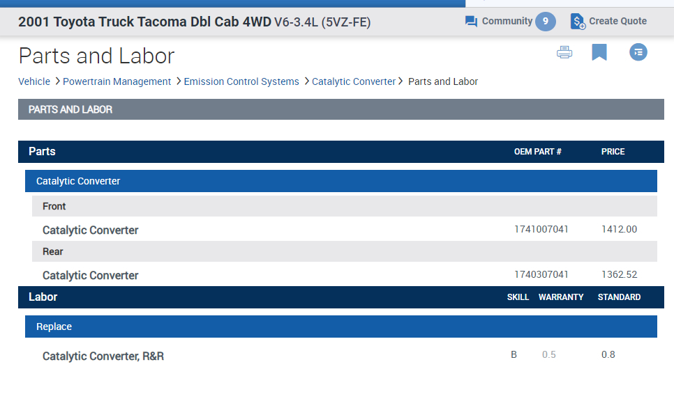 My check engine light came on, so I got a diagnostic. The mechanic's report said I needed to replace the bank one catalytic converter, which I believe on this truck is the front one. However, I am having a difficult time finding what I need online. Any idea what I should search for or any good auto part sites? And can it be a universal cat converter, or does it have to be California legal?