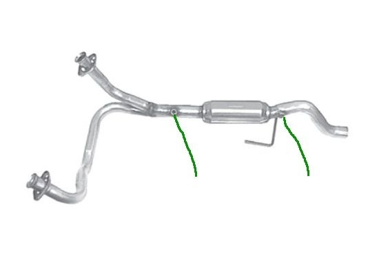 Now another issue is fitment. Look at the images. Notice that your system uses 4 O2 sensors? Both up front? The Federal units don't have those, they use the single rear converter with an O2 sensor on each end of it.