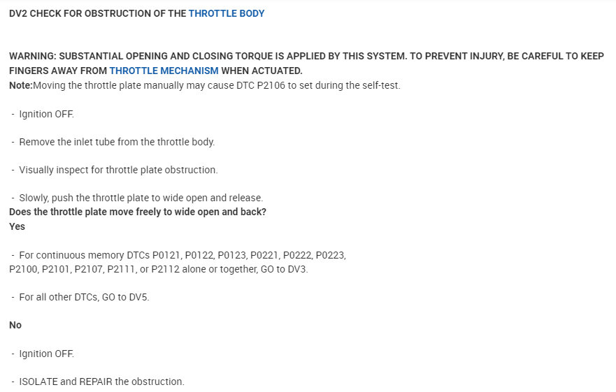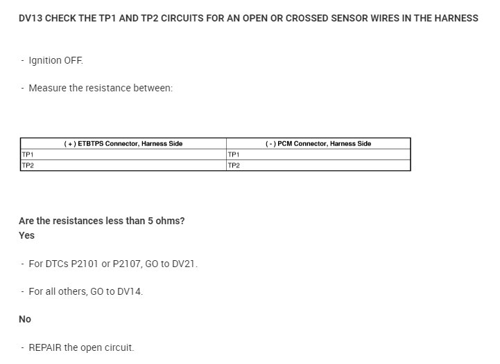 Coder P2112 indicates the throttle plate is at an angle further than commanded by the PCM. This leads me to a list of diagnostics specific to the P2112 which I have attached below.