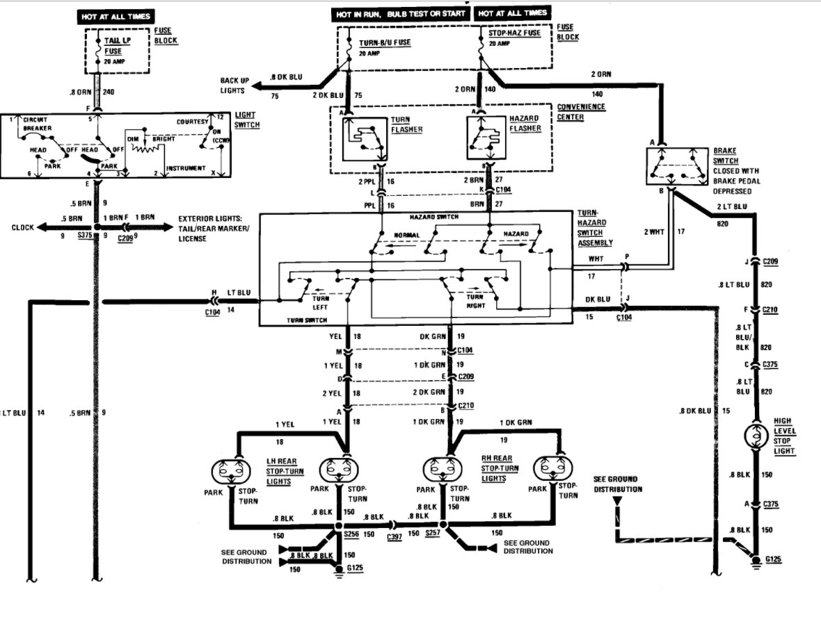 Problem solved. Using a multi meter to measure voltage can give misleading readings because the meter does NOT apply a load to the circuit. When I used a test light to measure the voltage at the light socket, I did not have any power at the light. A friend of mine who is an electrician told me the proper way to measure voltage is with a test light because it applies a load to the circuit. Using the wiring diagram from Ken, my friend noticed that the light switch has two contacts, one for normal brake lights and one for the center light. He snapped the switch several times and contact was made to the center light. All is well that ends well. Light now functioning correctly. Thanks for the help.