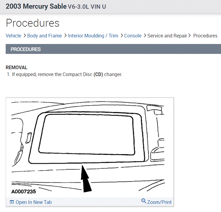 Cannot remove center console. I removed the CD player and insert along with the 4 bolts below it. I pulled back the side caps along the outside bottom and removed the hidden 2 screws on both side. I disconnected the battery and pulled shifter back to drive. I removed the shifter knob and also the trim panel under it. The center console has a black plastic duct that runs through it providing air to back seat area.