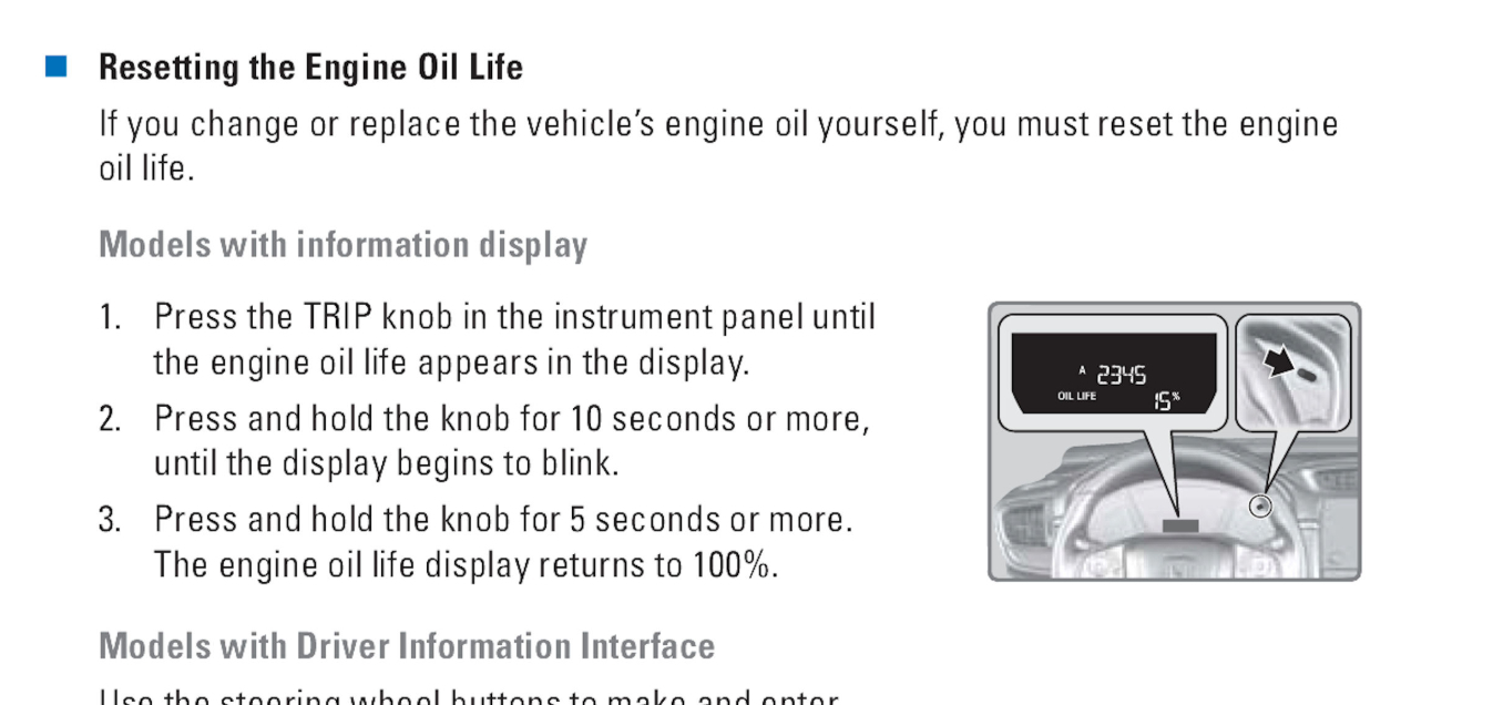 Hello, I was wondering if I change the oil in my CRV how do I reset the computer?