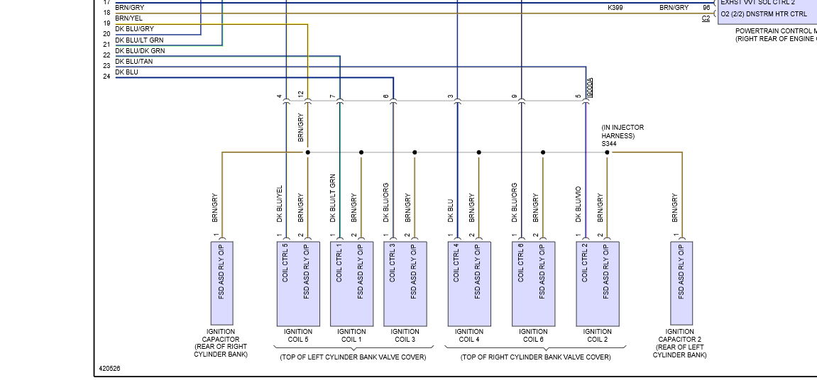 Here is a wiring diagram, this will help a bit, As you can see the spark plugs are under each individual ignition coil. This is a direct ignition system (DIS). You will have to unbolt each coil to get to the plugs. It is not as hard as it may seem. Just be easy and do not break anything and you will be fine.