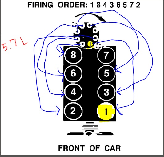 See pics below. Note, I highlighted cylinder 1 on the cap and engine block. At the crankshaft, there will be a beveled line that should be even with the TDC indicator.