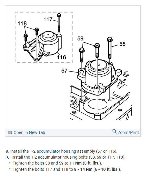 Question 2. I need ("the exact torque") for the 3 accumulator bolts and all of the oil pan bolts (in ft pounds please) my wrench starts at 10 lbs standard.
