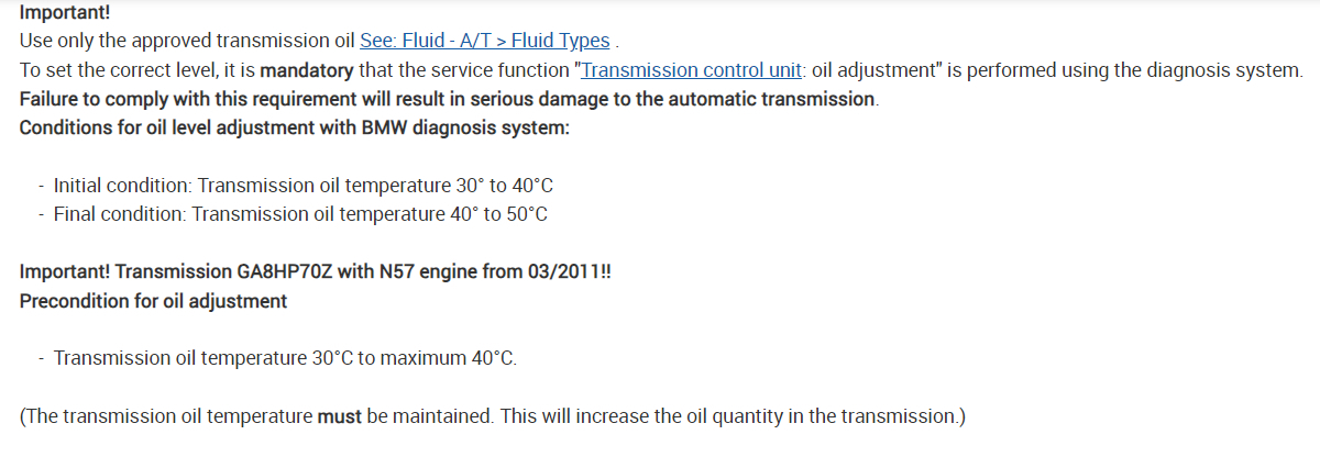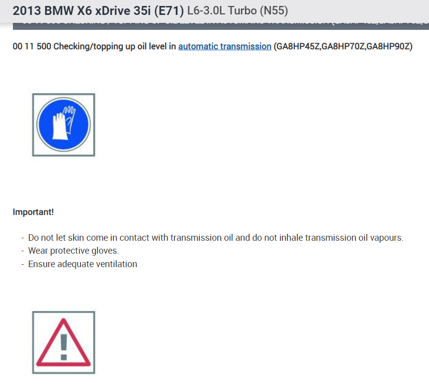 Warning! Never mix any other oil with this transmission fluid when doing repairs or topping up. Use of any other oil will cause a non-warrantable transmission failure.