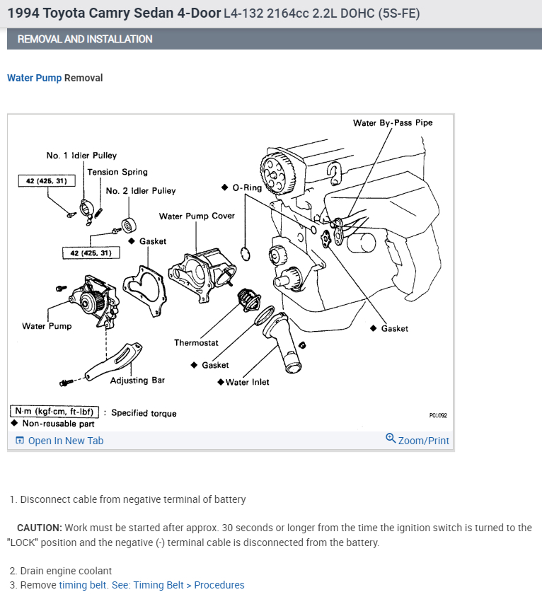 1996 Toyota Camry Diagram/instruction Replacing Water...