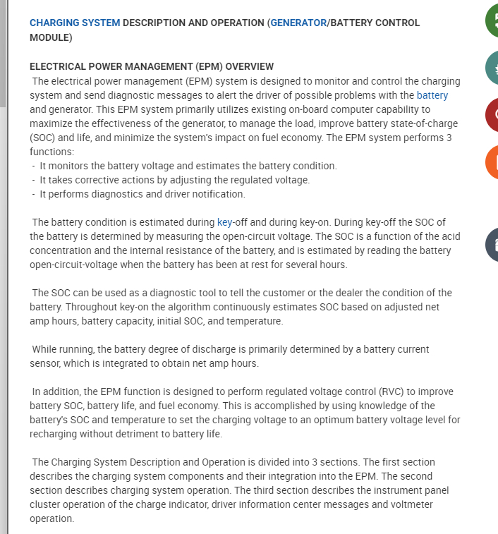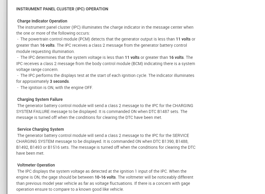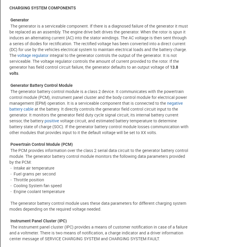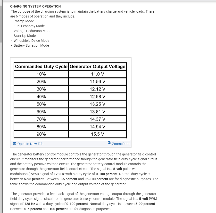 Take a look at the entire system description below. Once the vehicle is warmed up and the load does not demand a higher voltage then it will drop the voltage output down to just below 13 and a half volts.