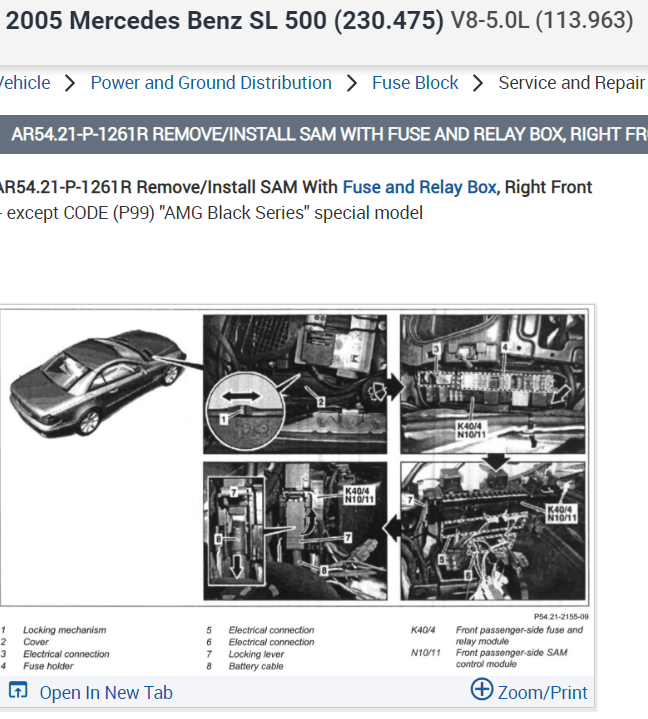 12 Remove front passenger-side SAM control module (N10/11) with front passenger-side fuse and relay module (K40/4)