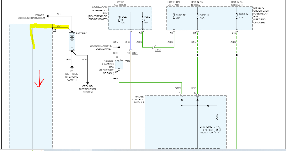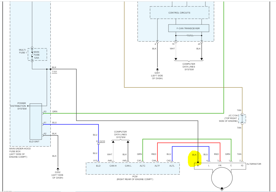 Last, if you look at the schematic, you'll notice at the alternator there is a black wire that provides battery voltage. Confirm that is present.