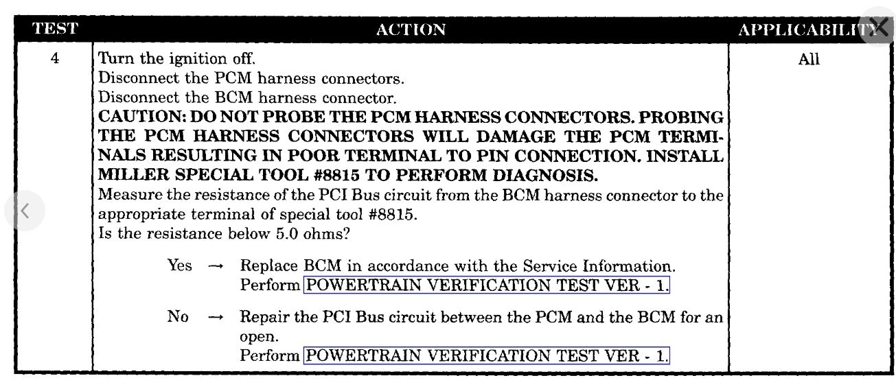- PCI bus circuit open from PCM to BCM