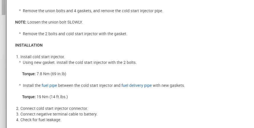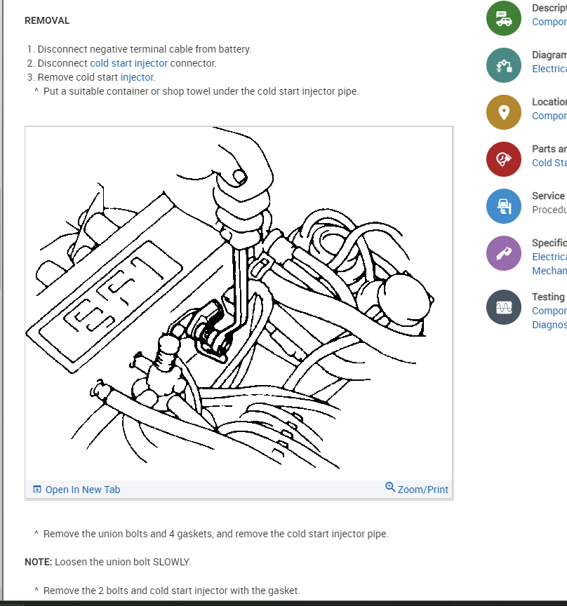 I would not suggest just replacing the injector, but this is a common issue from the cold start injector. So, let's run through the testing below and we can confirm the fuel pressure as well and then I would replace the injector.