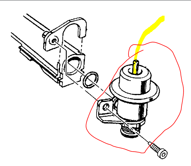 Since we have that code, do me a favor and locate the regulator on the fuel rail. There will be a vacuum hose going to it (see pic 1). Remove the vacuum hose and check to see if there is any evidence of fuel in it. Also, for a test only, start the engine and confirm there is a vacuum to that hose.