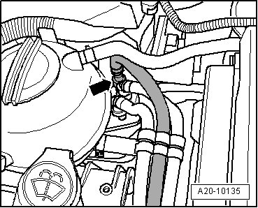 Remove fuel supply line - arrow - and catch escaping fuel using a rag.