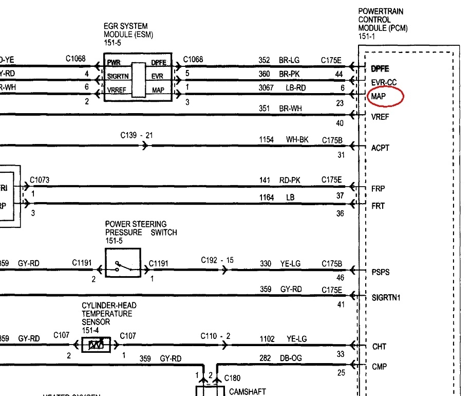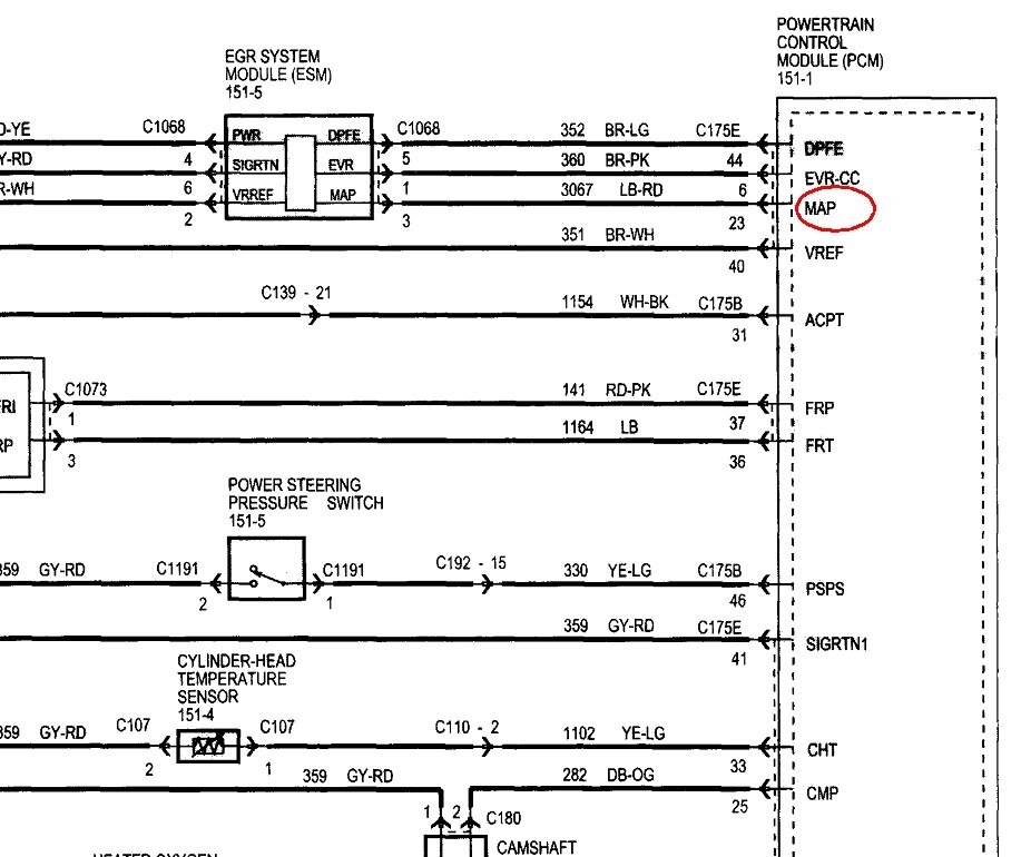 The MAP sensor is built into the EGR module. I added the third diagram as an expanded view to try to make it easier to read.