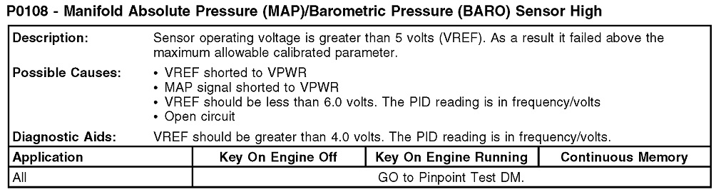 Some diagnostic charts can be up to 33 pages long. Ford didn't offer quite that much for you to read. The fifth image is of the diagnostic chart for P0108.