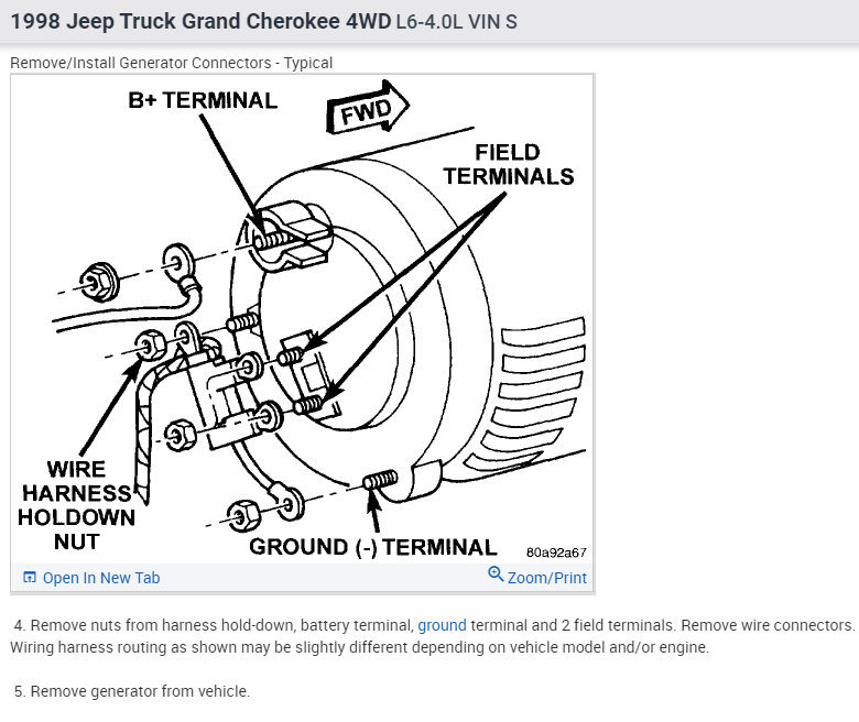 Hello, I have the vehicle listed above Grand Cherokee Laredo. So, what's going on is, when I turn on my A/C unit my check gauge light comes on plus I get a warning buzzer, and my voltage gauge shows not charging, with an external voltmeter in line voltage shows 0 when I turn the A/C unit off and bring RPMs up to 2,000, voltmeter shows charging at 13. Volts again