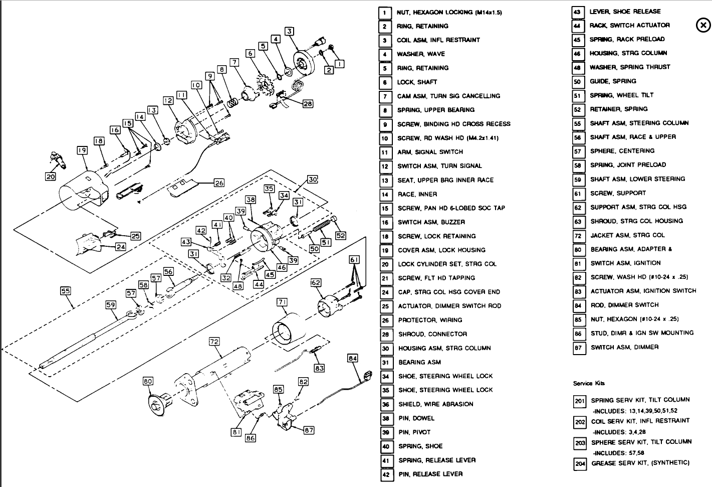 Remove steering column housing by pulling back on tilt lever and pull steering column housing down and away from steering column.