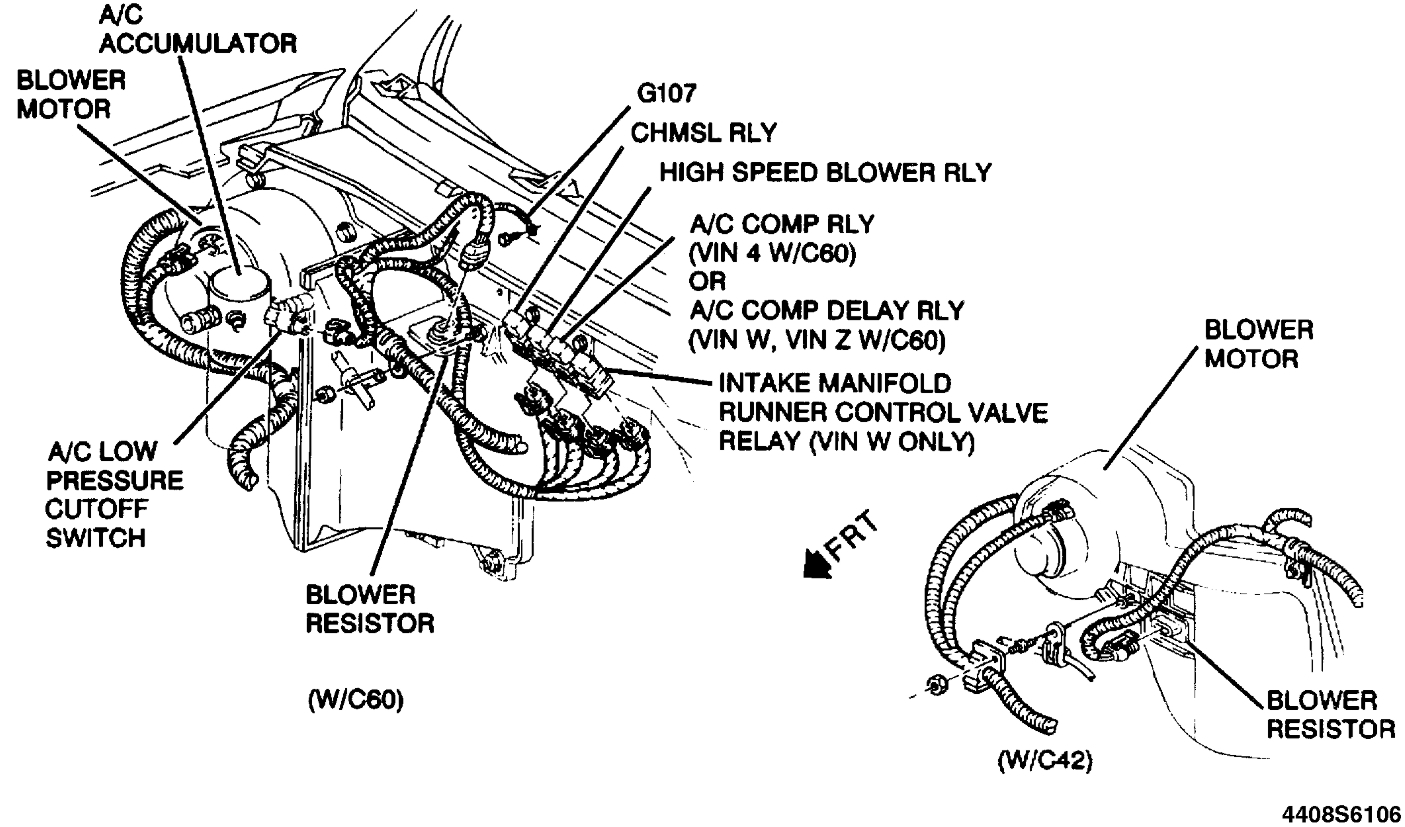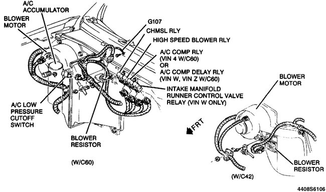 Check the blower motor relay right rear of engine compartment and also the blower motor resistor same location
