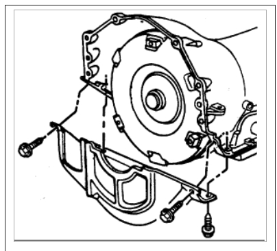 You use a long extension and go up from behind once the transmission mount is loose is here is a video of the job being done. Its a stick transmission but it shows what you what to see.