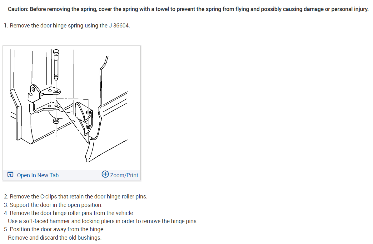How do I take the pins out of the hinges to replace them, all four front hinges need to be replaced but can't figure out how to do the top hinge on either side