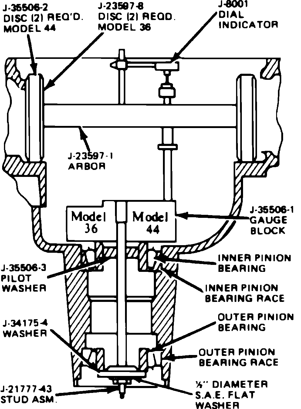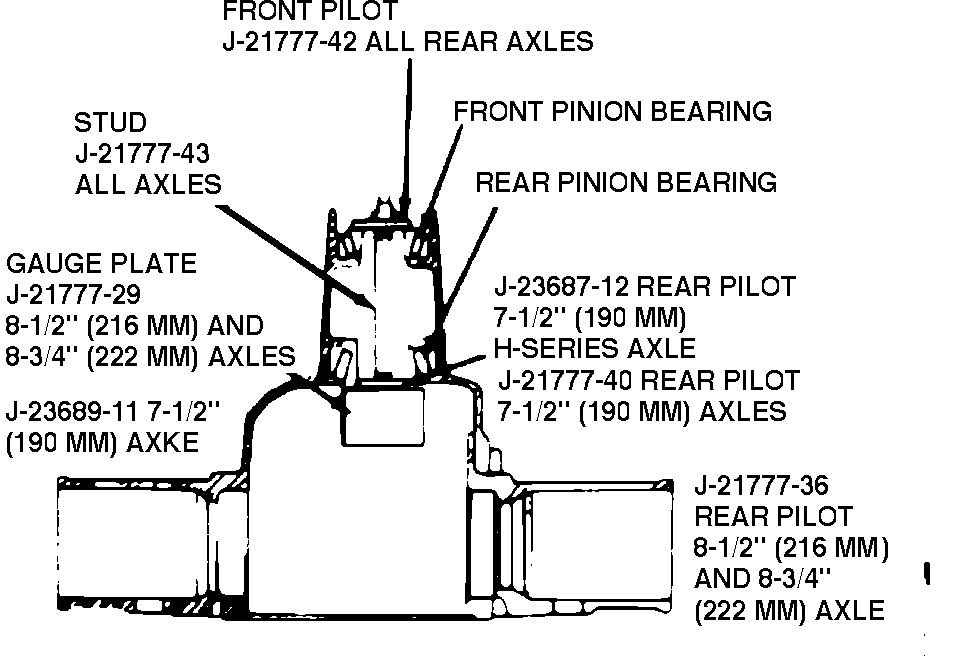 12. Remove gauging tools and pinion bearings from housing, noting installation position of bearings.